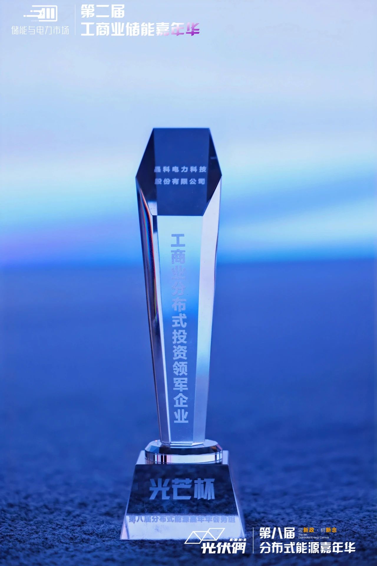 昨日,由中国光伏行业协会、光伏們、风芒能源、储能与电力市场联合主办的第八届分布式能源嘉年华研讨会在浙江杭州召开。在大会“光芒杯”颁奖典礼上,多宝电竞科技凭借在分布式光伏投资领域的卓越贡献与市场影响力,荣获主办方颁发的“工商业分布式投资领军企业”奖。